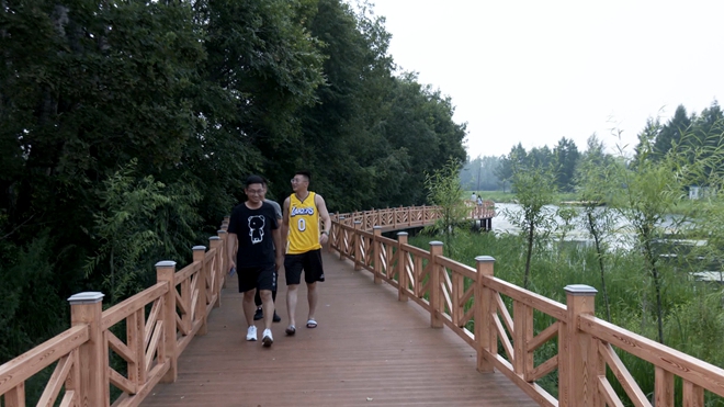游客 姜立伟:今天是假期,我们几个约着出来玩,感觉这个鱼池栈道就非常美丽,非常贴近大自然,这里山清水秀的,感觉体验农家生活还是别有一番风味的,也是平时生活里体验不到的。